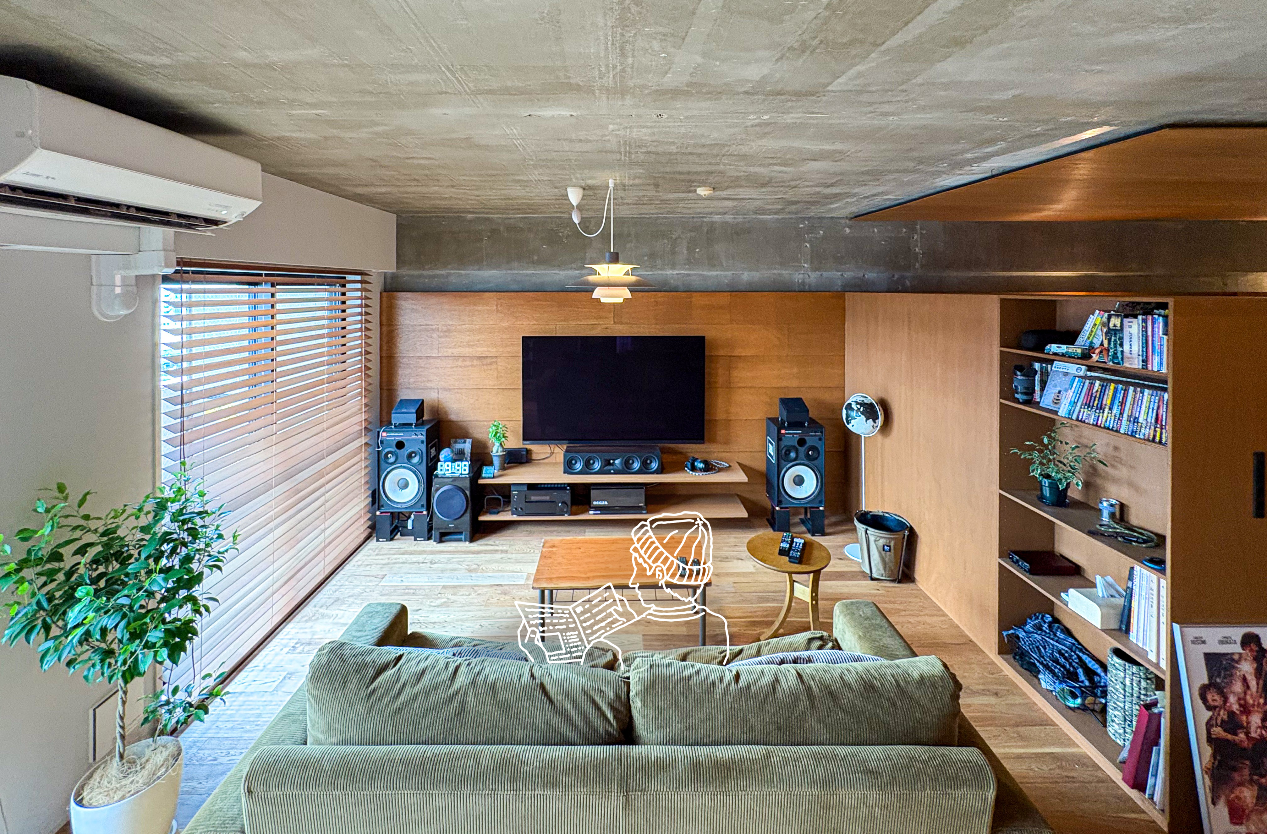 間仕切りも天井も取り払い、視覚的にも心理的にも開放感あふれる“大空間リビング”へ。