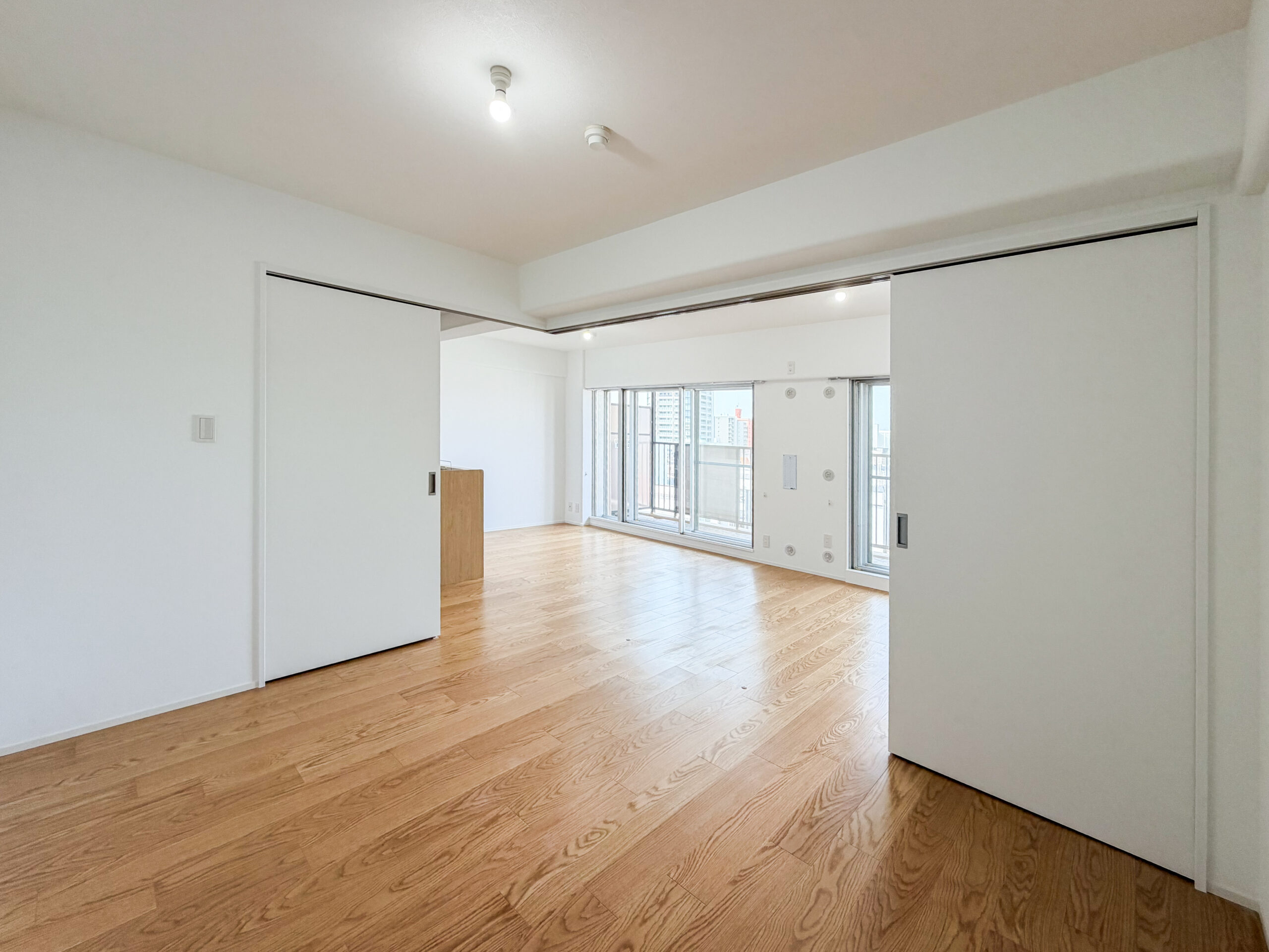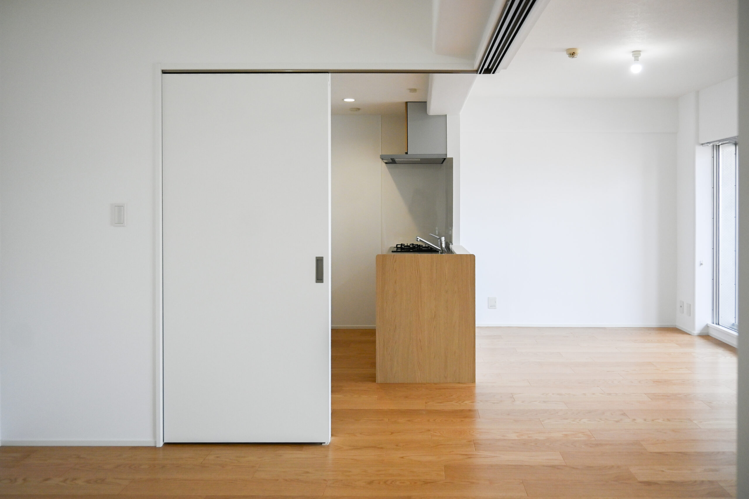 リビングと洋室をパーテーションで仕切ることも、ひと続きの空間として開放することもできる設計としました。