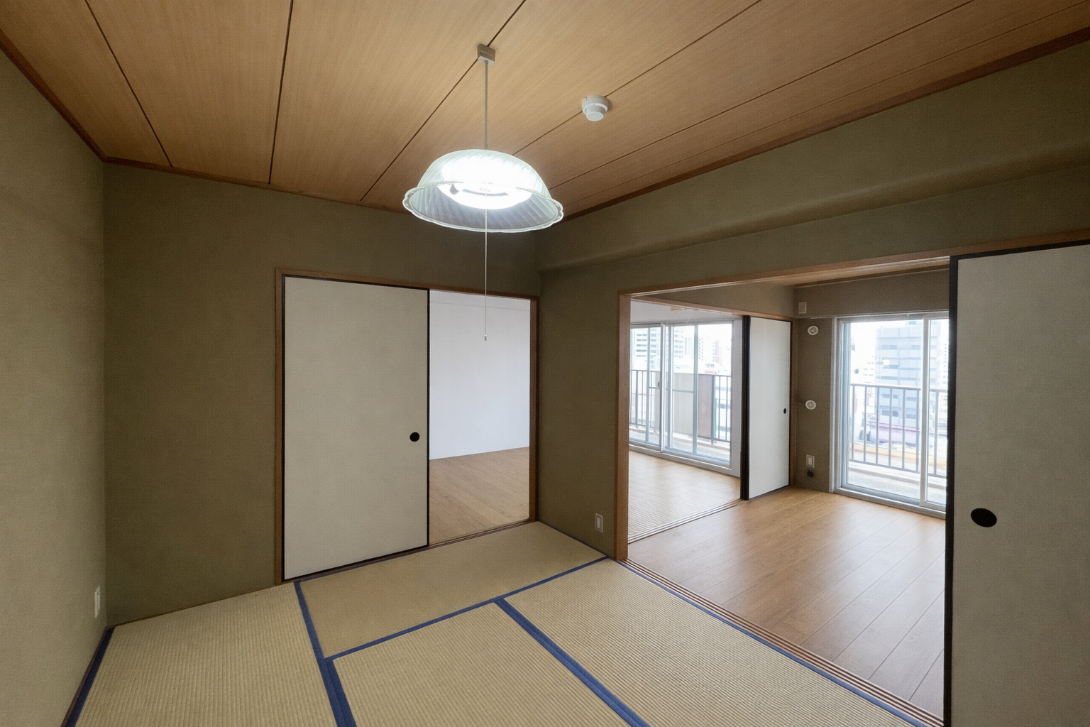 和室の細かく仕切られた間取りは、どうしても目線を遮り、空間を実際よりも狭く感じさせてしまいがちです。壁を取り払い、フローリングの大空間へと再構成するだけで、これほどまでに印象は大きく変わります。