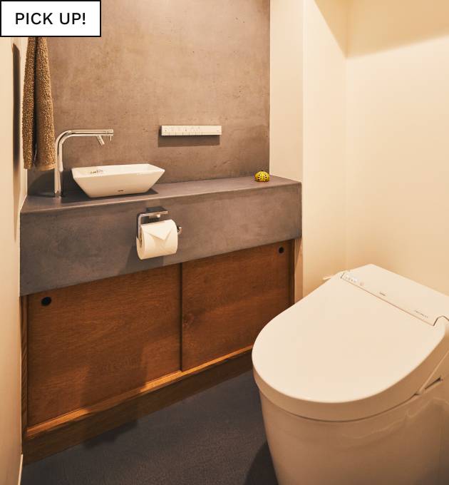 お部屋の「木+コンクリート」のデザインをトイレにも。