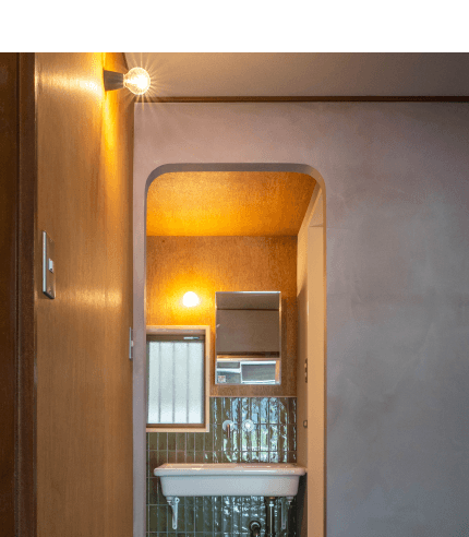 メーカー品にモルタル造形を加えることで、特別な空間に。