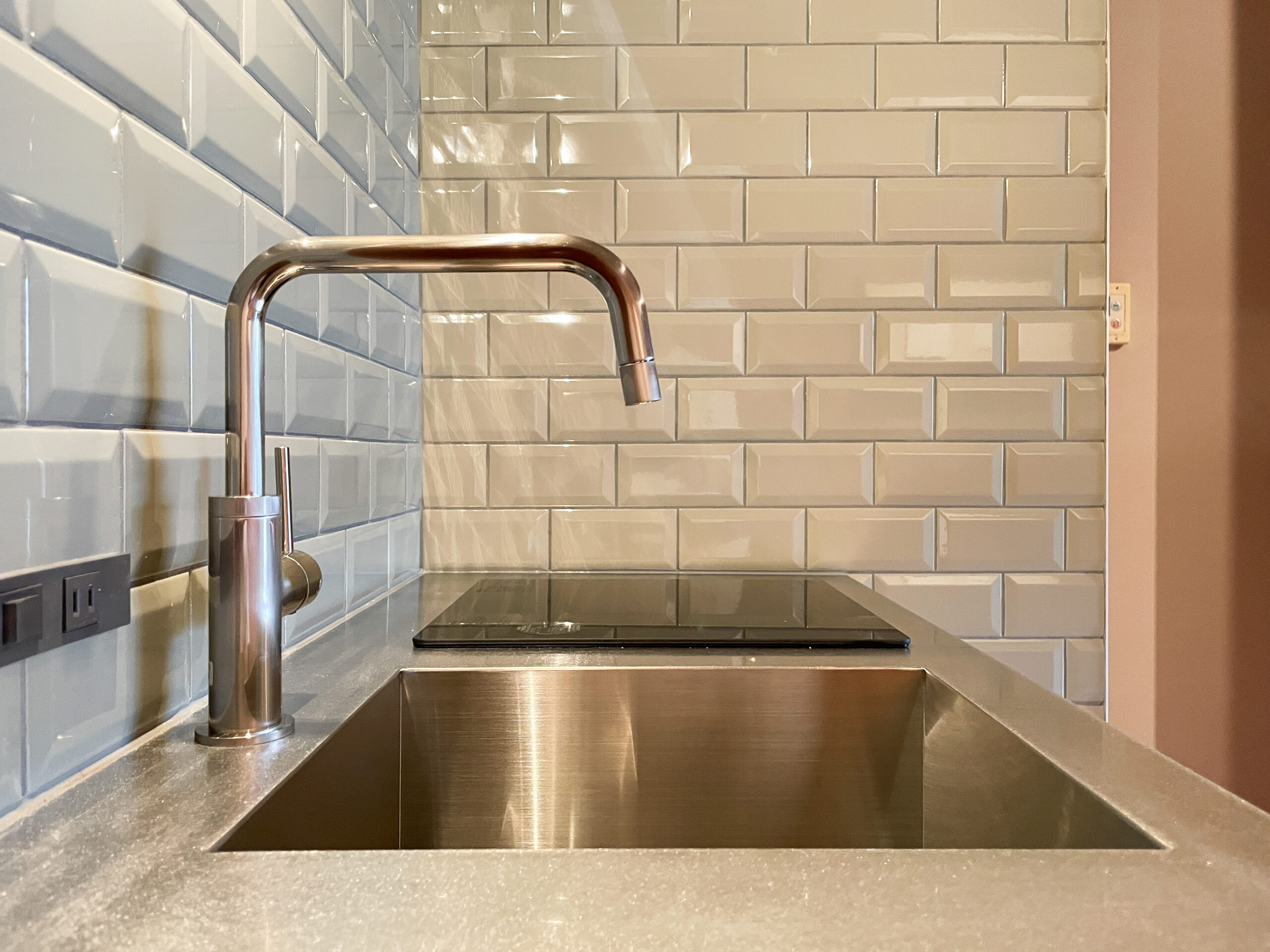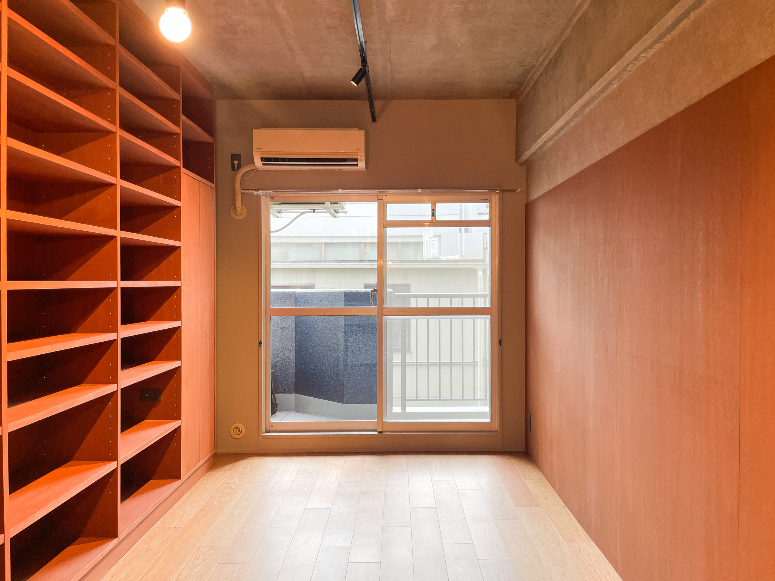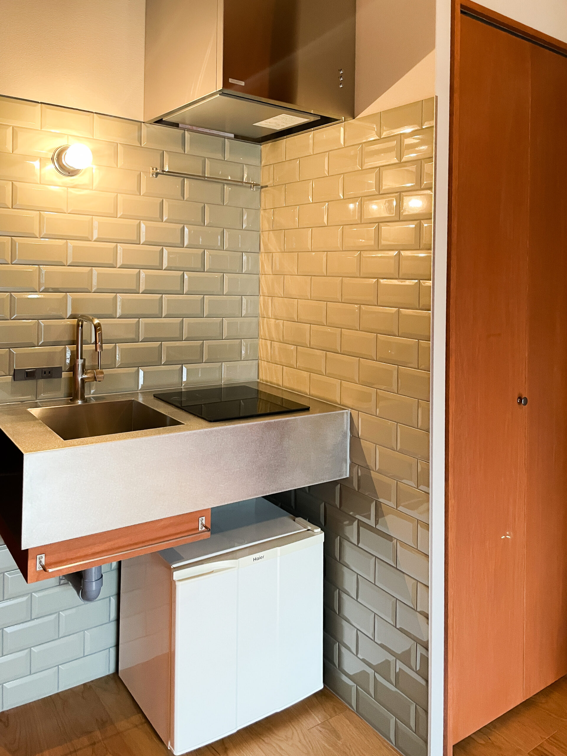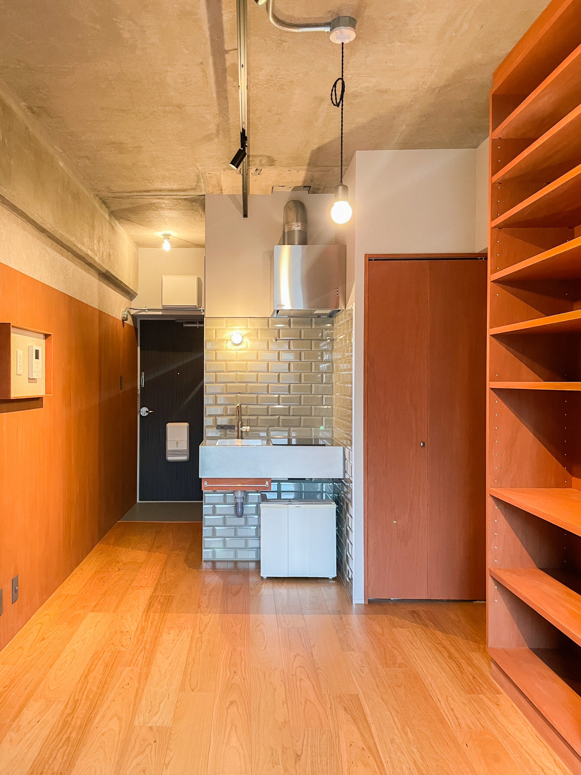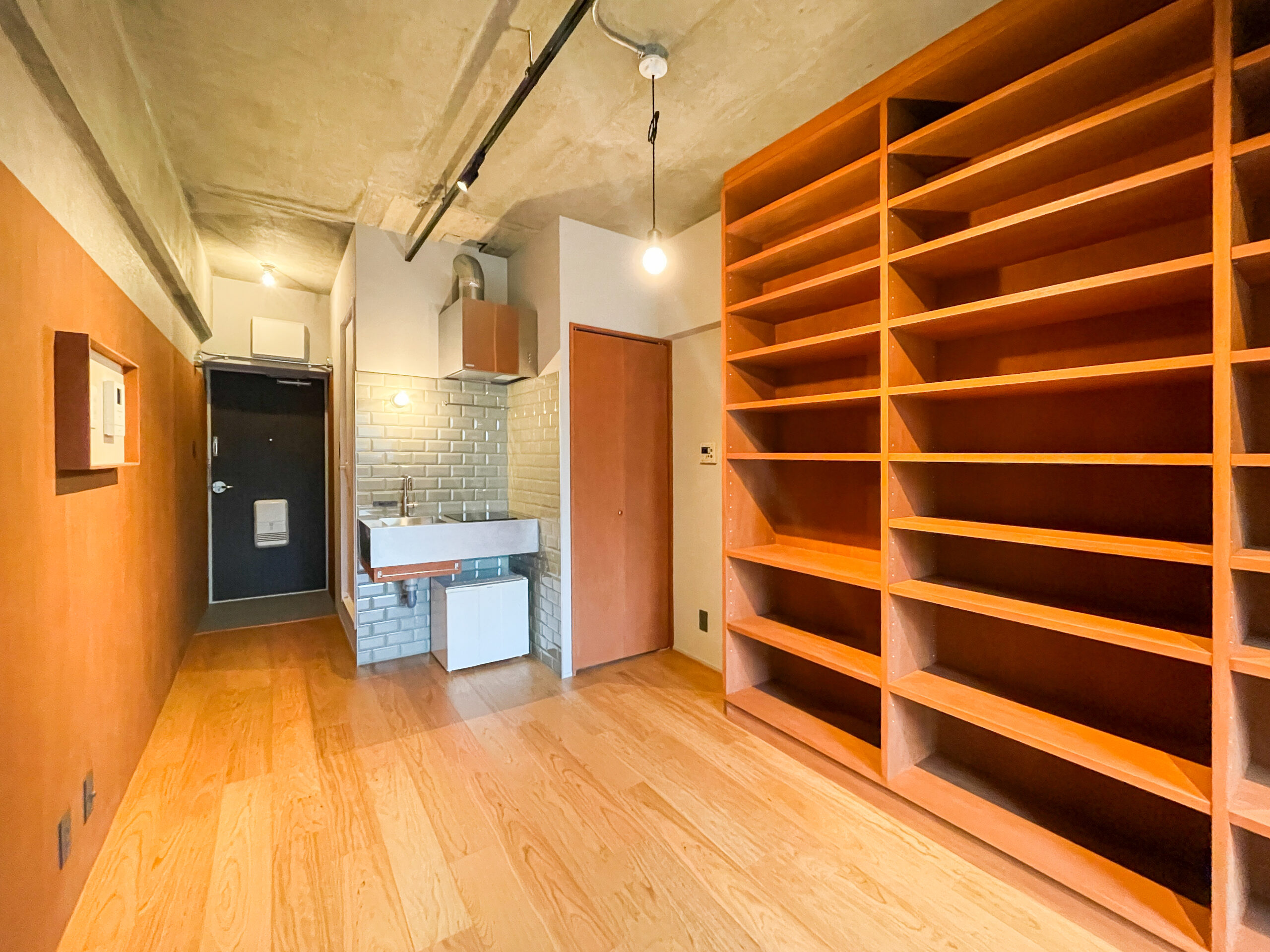ワンルームマンションを、仕事場兼セカンドハウスとしてリノベーションしました。忙しい日々の合間に立ち寄り、シャワーを浴びたり、軽く料理をしたり、仮眠をとったり。ワークと休息を無理なく切り替えられるミニマムな空間がご要望でした。